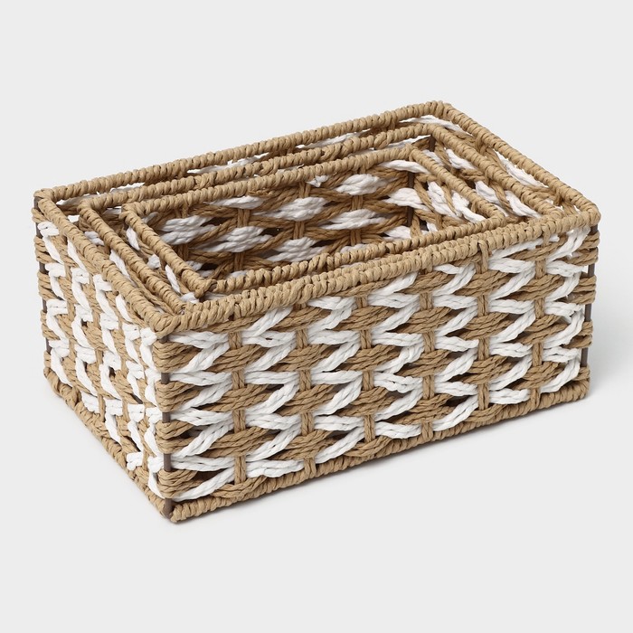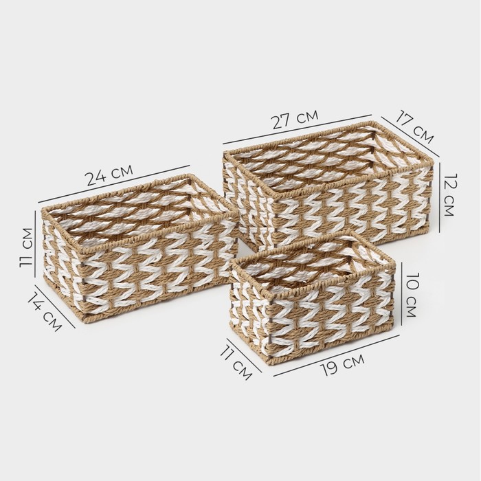 Корзины для хранения LaDо́m, 3 шт., ручное плетение, бежевые — Характеристики