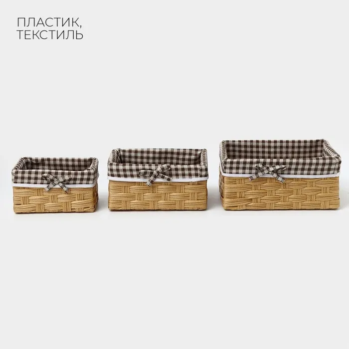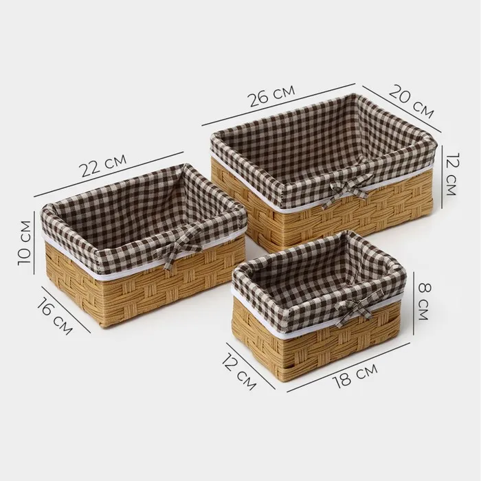 Корзины для хранения LaDо́m, 3 шт., ручное плетение, пластик, бежевые — Характеристики