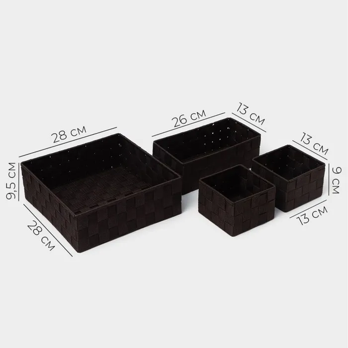 Корзины для хранения LaDо́m, 4 шт., ручное плетение, коричневые — Характеристики