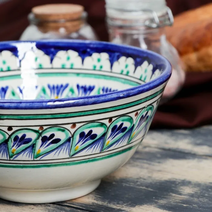 Риштан — город на востоке Узбекистана, один из древнейших в Ферганской долине. С давних времён Риштан славится своим гончарным искусством изготовления цветной керамики. Красноватую глину для изделия добывают в самом городе. Мастера утверждают, что их глина настолько высокого качества, что даже не нуждается в предварительной обработке. Дополните коллекцию кухонных аксессуаров пряными восточными нотами.
