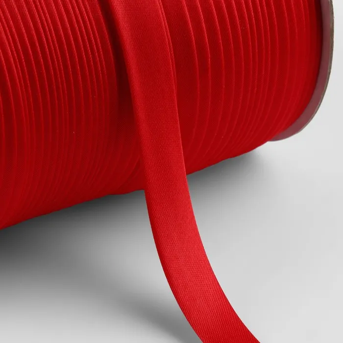 Красная атласная бейка — универсальная отделка для создания аккуратных кантов и декоративных акцентов. Её насыщенный цвет и гладкая полиэстеровая поверхность подходят для большинства швейных проектов. Стандартная ширина 15 мм удобна для обработки срезов различных тканей.