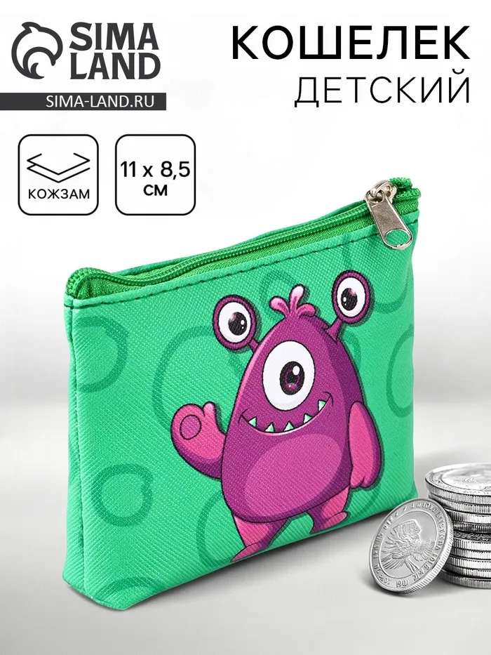 Кошелек детский на молнии «Монстр зеленый», 11 х 8,5 см — Характеристики