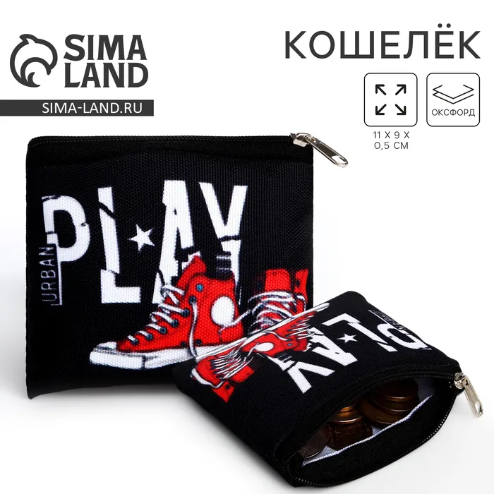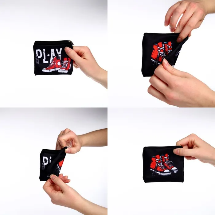 Кошелек детский текстильный «Кеды», 11×9×0.5 см, черный — Характеристики