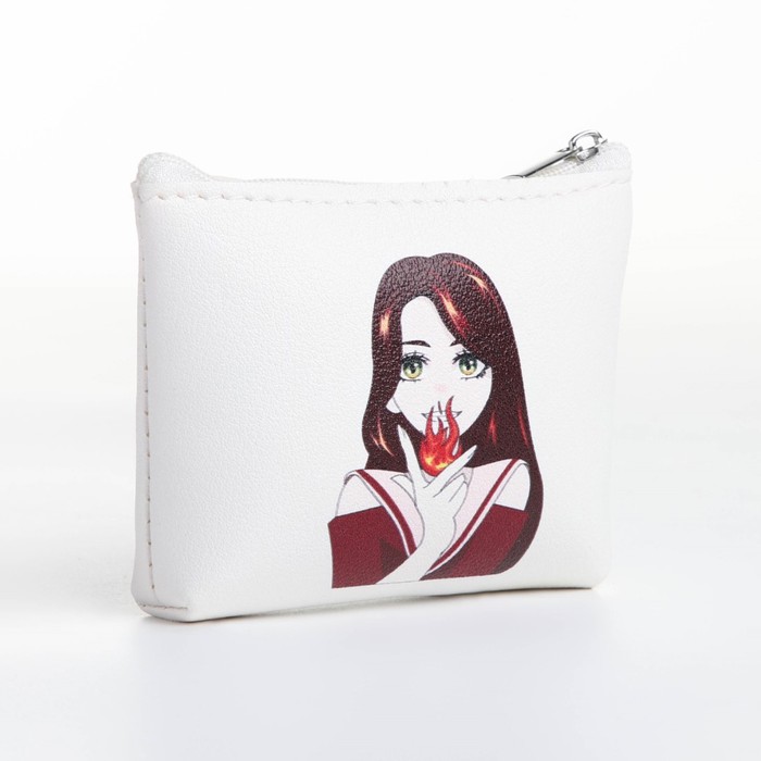 Кошелёк детский «Аниме fire», монетница, на молнии, с рисунком, белый