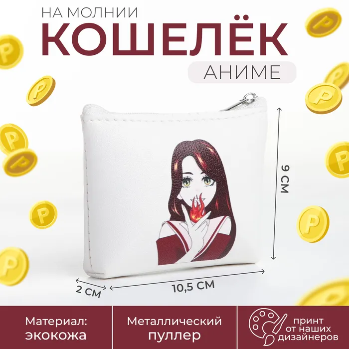 Кошелёк детский «Аниме fire», монетница, на молнии, с рисунком, белый — Характеристики