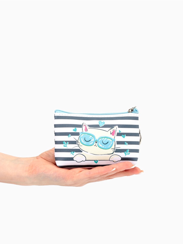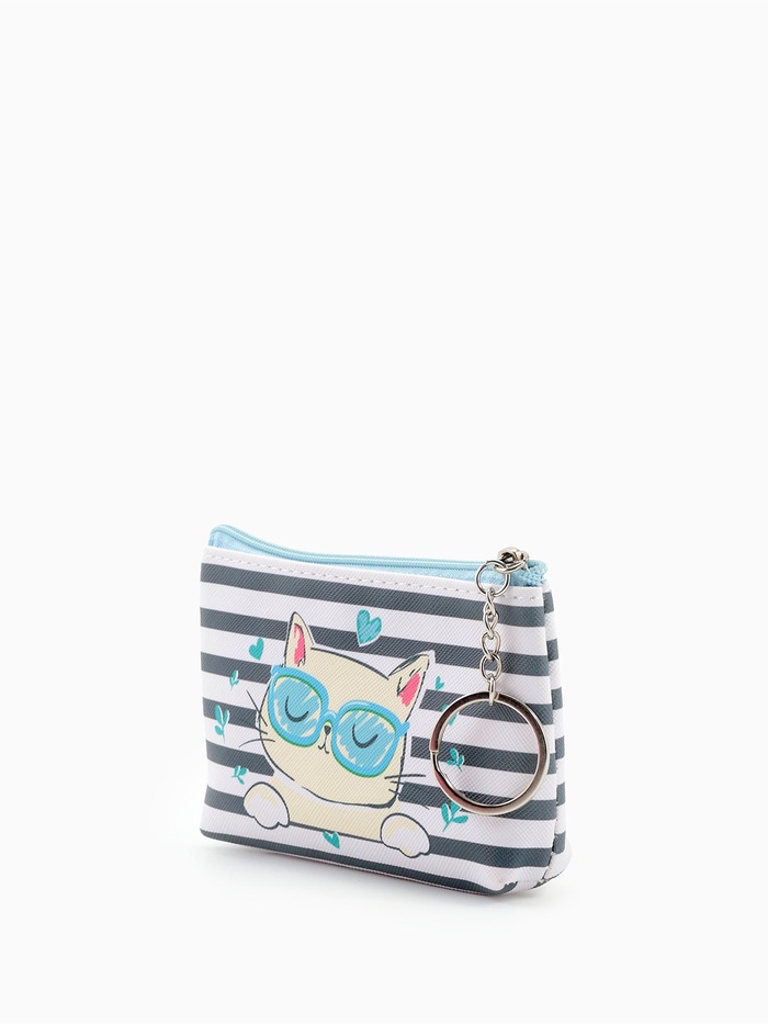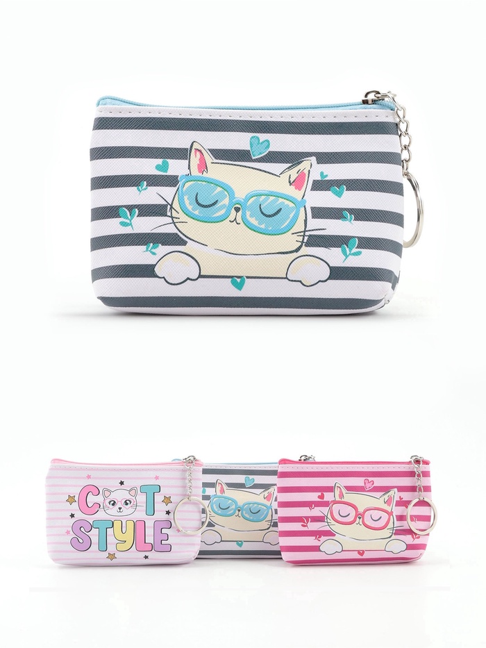 - Милый рисунок кошки делает монетницу желанным аксессуаром для девочки.