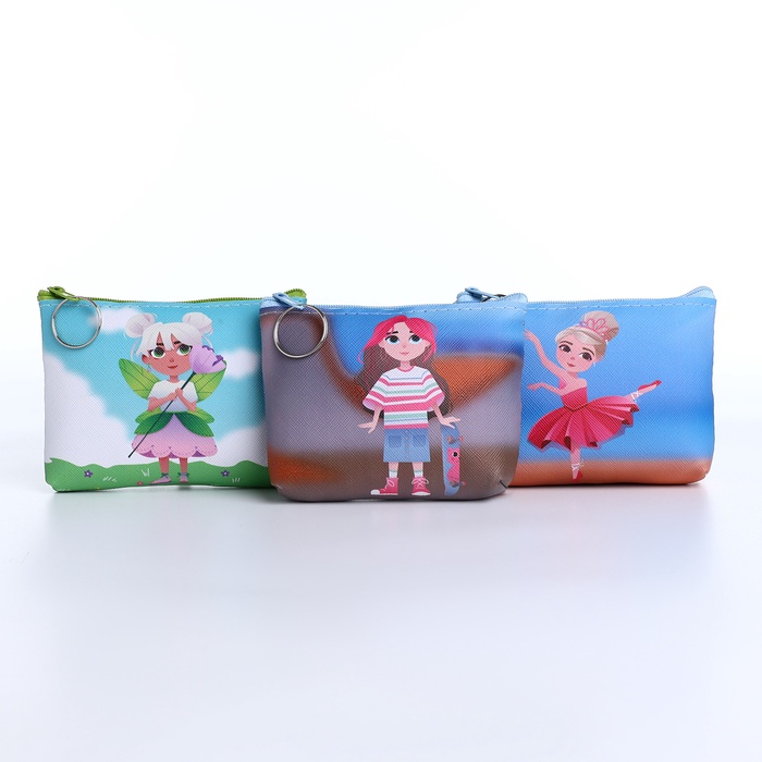 Детский кошелёк для монет с изображением девочек помогает вашей дочери освоить первые навыки финансовой самостоятельности. Аксессуар с удобной молнией и ярким дизайном создаёт личное пространство для хранения мелочи, развивая ответственность через игру.