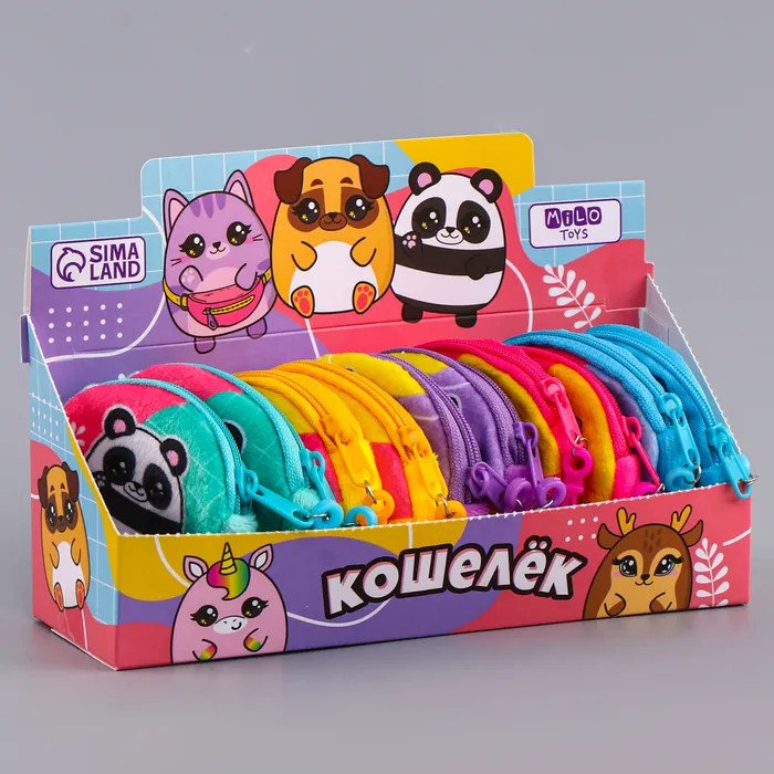 Кошелёк детский для девочки в шоубоксе «Зверюшки», плюш, МИКС — Характеристики