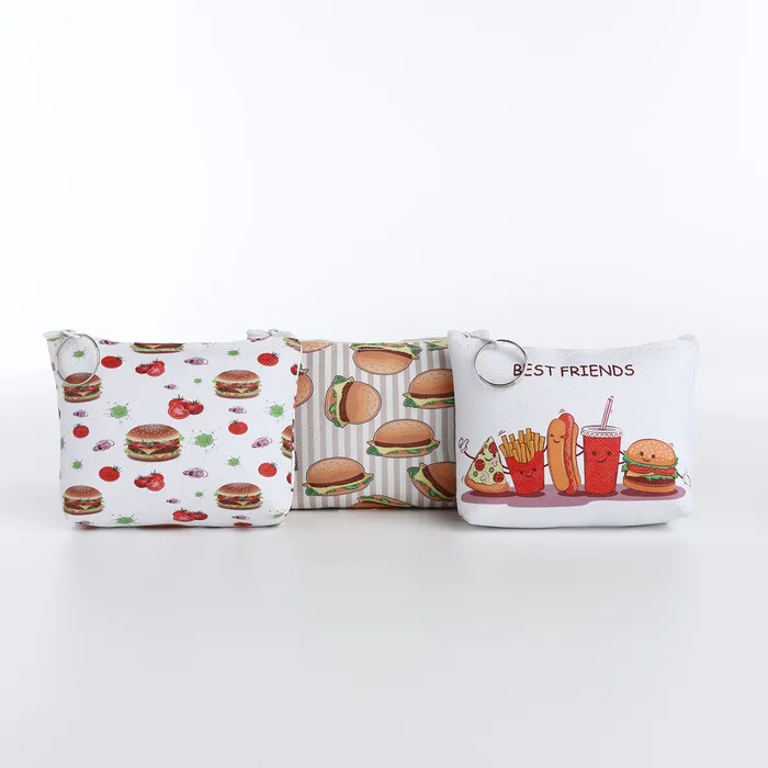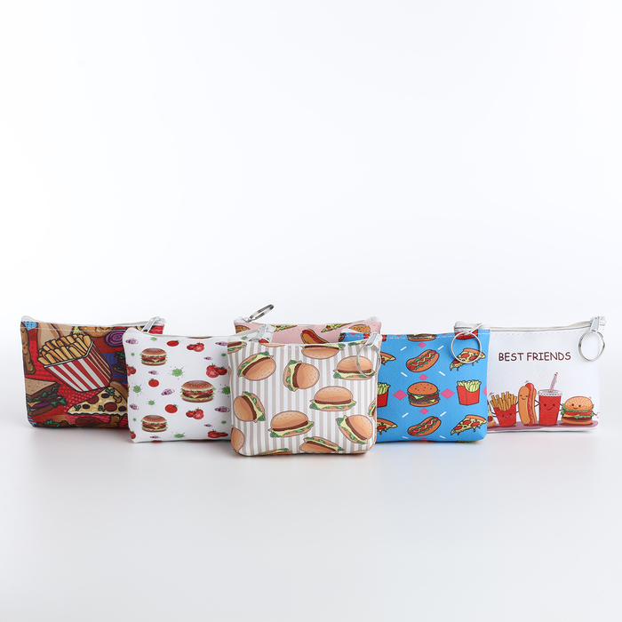 Откройте для себя очарование детского кошелька с застёжкой-молнией. Идеальный аксессуар для юных модниц и взрослых женщин, этот кошелёк из искусственной кожи привлекает внимание яркими изображениями еды, добавляя игривый штрих к любому наряду.