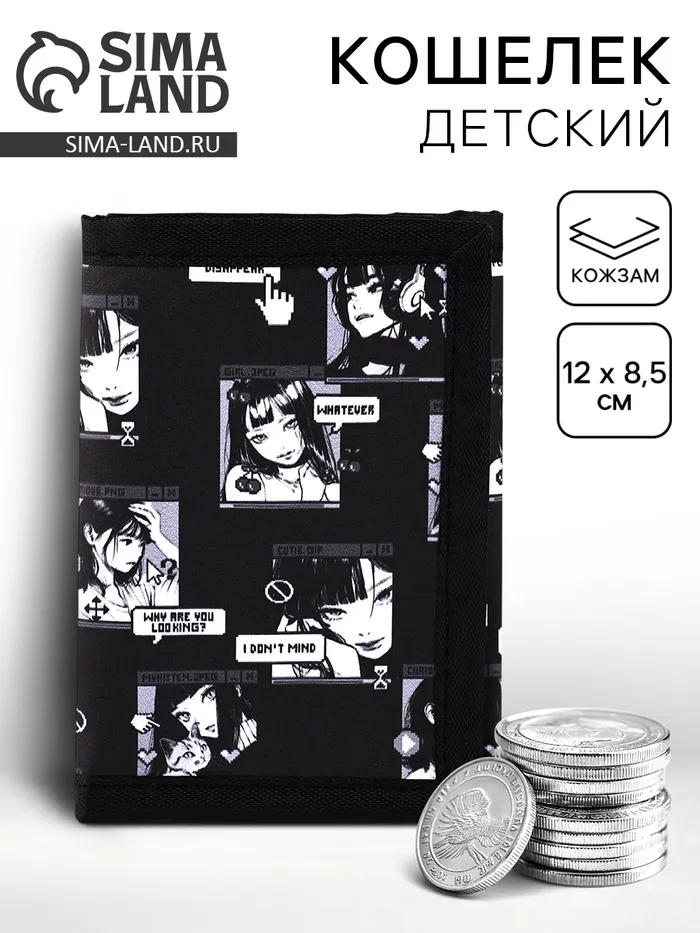 Кошелёк детский на липучке «Комикс», чёрный — Характеристики