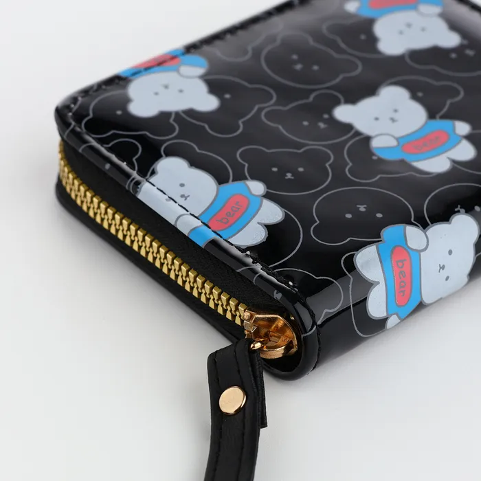 Кошелёк помогает девочке систематизировать хранение карманных денег для школьных нужд и личных покупок. Изображение медвежонка создаёт эмоциональную связь, превращая практичный аксессуар в верного друга. Чёрный цвет сочетается с разной одеждой, а продуманная организация внутреннего пространства приучает к ответственности с ранних лет.