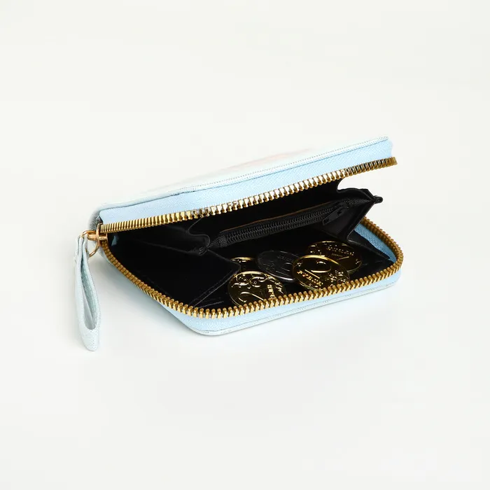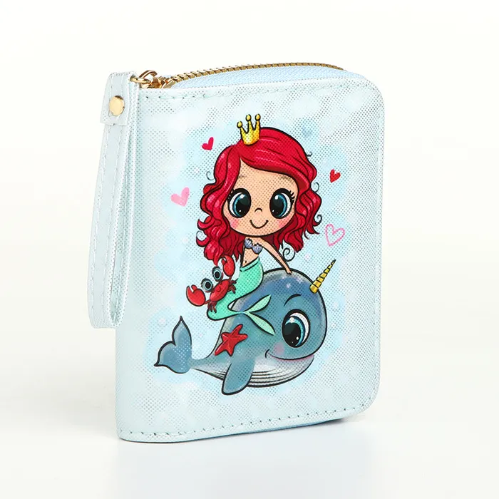 Этот голубой кошелёк с русалкой создан для девочки, которая обожает сказочные истории и морские приключения. Он станет её личным сокровищем, где каждая монетка превращается в жемчужину, а карты — в волшебные картинки.