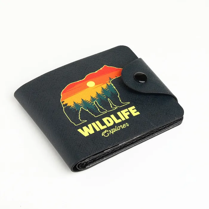Детский кошелёк станет стильным и удобным аксессуаром для вашего ребёнка. Этот чёрный аксессуар складывается вдвое и украшен выразительным рисунком медведя, что делает его не только практичным, но и привлекательным. Благодаря кнопочной застёжке юный обладатель сможет легко открывать и закрывать его, что добавляет удобства в повседневном использовании.