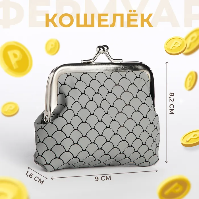 Кошелёк монетница детская на фермуаре, цвет серый — Характеристики