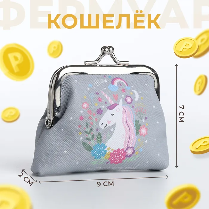 Кошелёк монетница на фермуаре, цвет серый — Характеристики