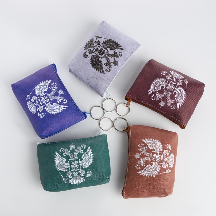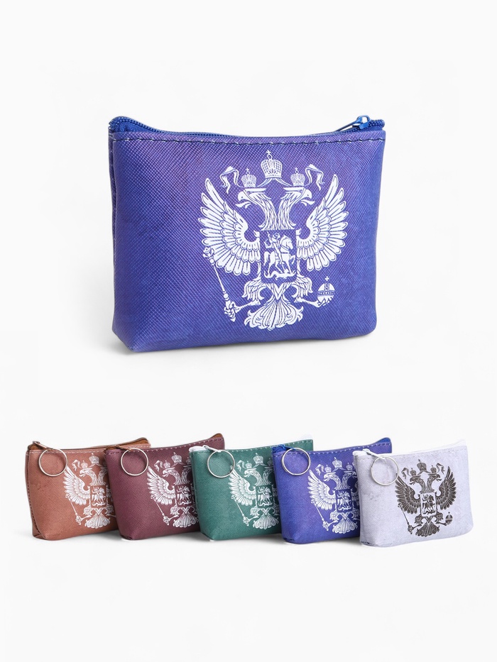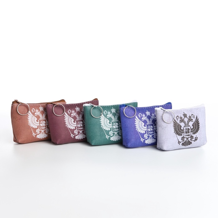 Кошелёк-монетница на молнии, 10×2.5×9 см, с гербом РФ, МИКС — Характеристики