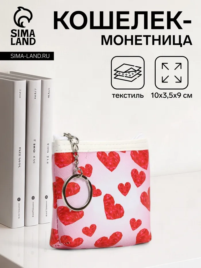 Кошелёк монетница на молнии, цвет белый/розовый/красный — Характеристики