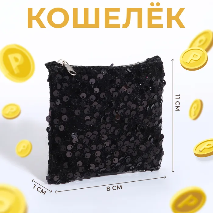 Кошелёк монетница на молнии, цвет чёрный — Характеристики