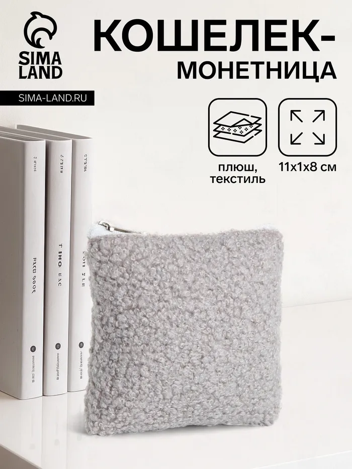 Кошелёк монетница на молнии, цвет серый — Характеристики