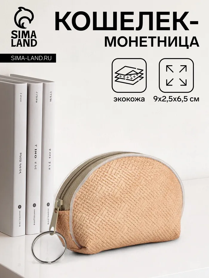Кошелёк монетница женская на молнии, цвет бежевый — Характеристики