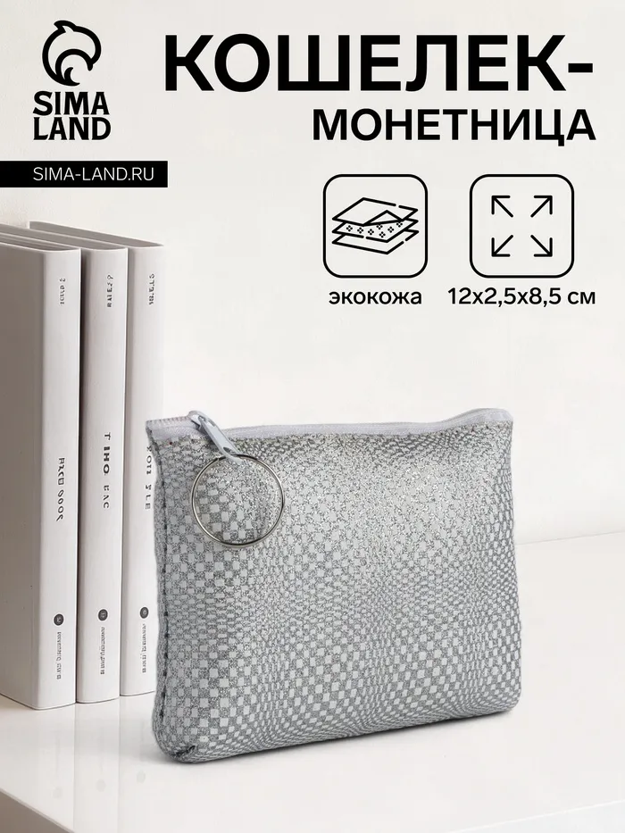 Кошелёк монетница женская на молнии, цвет серебряный — Характеристики