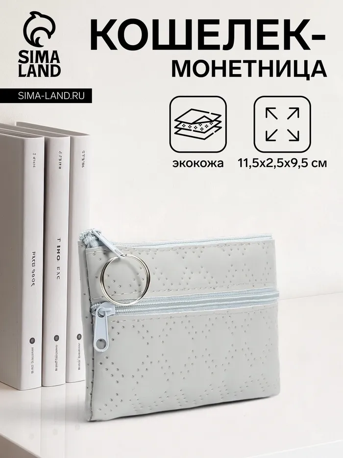Кошелёк монетница женская на молнии, цвет серый — Характеристики