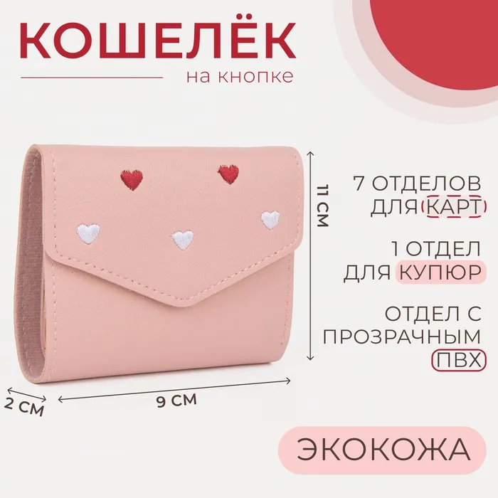 Кошелёк на кнопке, цвет розовый — Характеристики