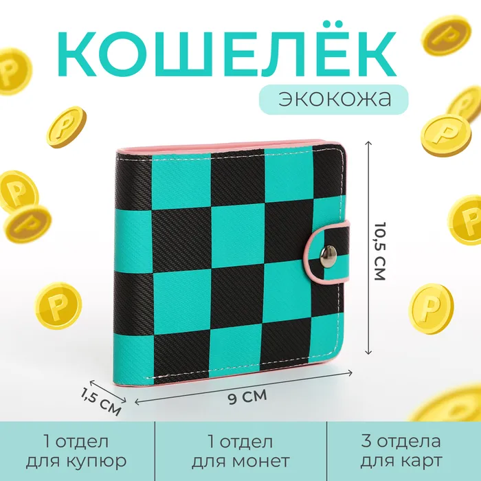 Очаровательный зелёно-чёрный кошелёк с кнопкой станет стильным и функциональным аксессуаром для вашей девочки. Его двойное сложение и клетчатый рисунок создают уникальный образ, который выделяет юную леди в толпе. Этот компактный помощник сделан из искусственной кожи и рассчитан на ежедневное использование.