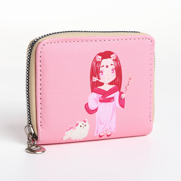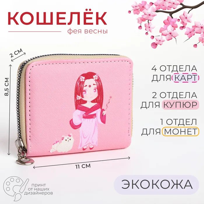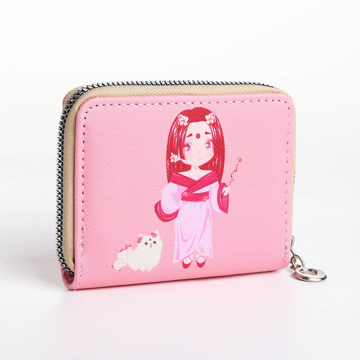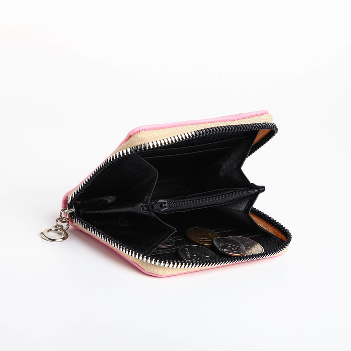 Кошелёк на молнии, отдел для карт, для монет, цвет розовый — Характеристики