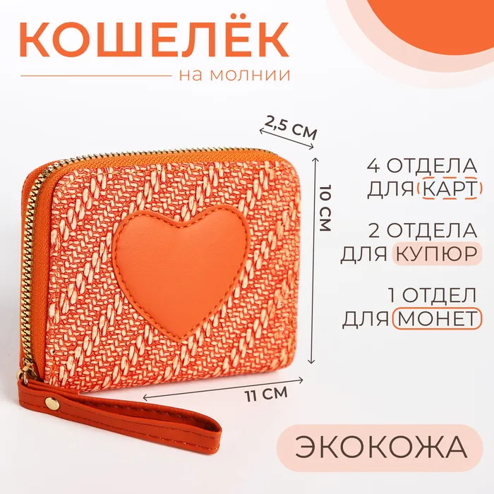 Кошелёк на молнии, цвет оранжевый — Характеристики