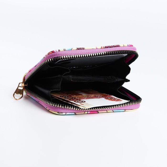 Кошелёк на молнии, цвет розовый/разноцветный — Характеристики