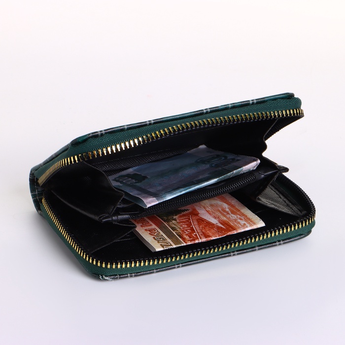 Кошелёк на молнии, цвет зелёный — Характеристики