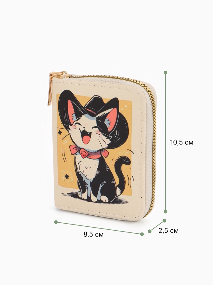 Кошелёк на молнии «Выбражулька», 8.5×2.5×10.5 см, с принтом, бежевый — Характеристики