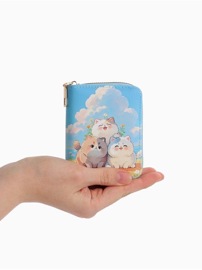 Нежно-голубой кошелек с милым котенком создан для девочек, которые ценят спокойные и милые вещи. Этот аксессуар станет верным спутником ребенка, помогая хранить карманные деньги и небольшие секреты.