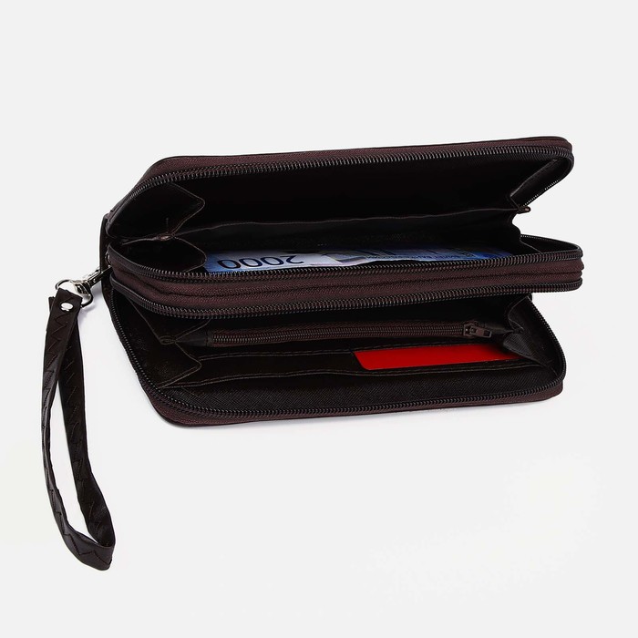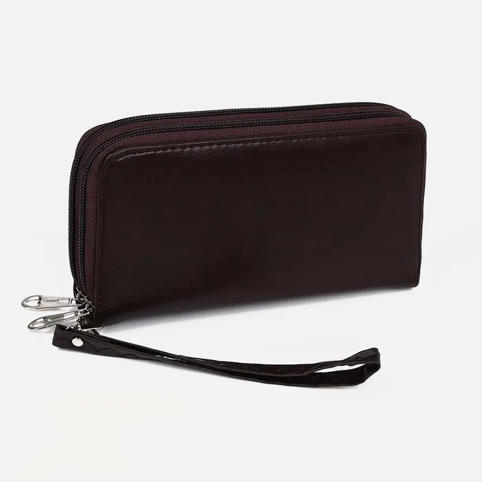 Кошелёк на молниях, с ручкой, цвет коричневый — Характеристики