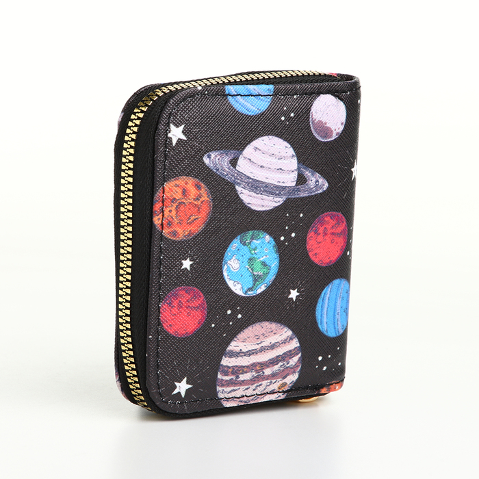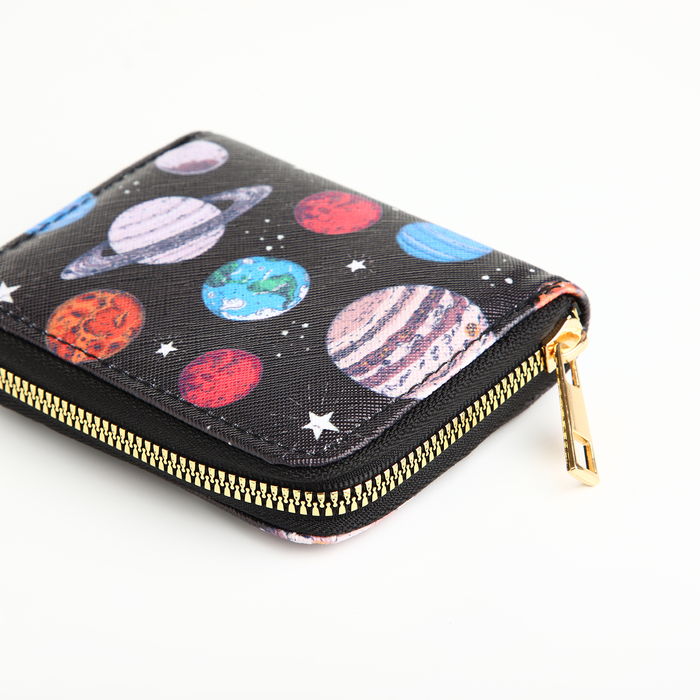Этот космический кошелёк станет первым шагом ребёнка в мир финансовой самостоятельности. Чёрный фон с таинственными звёздами и планетами создаёт ощущение загадочности, а практичная организация внутреннего пространства помогает содержать карманные деньги в полном порядке. Универсальный дизайн подходит всем детям, развивая ответственность и организационные навыки.