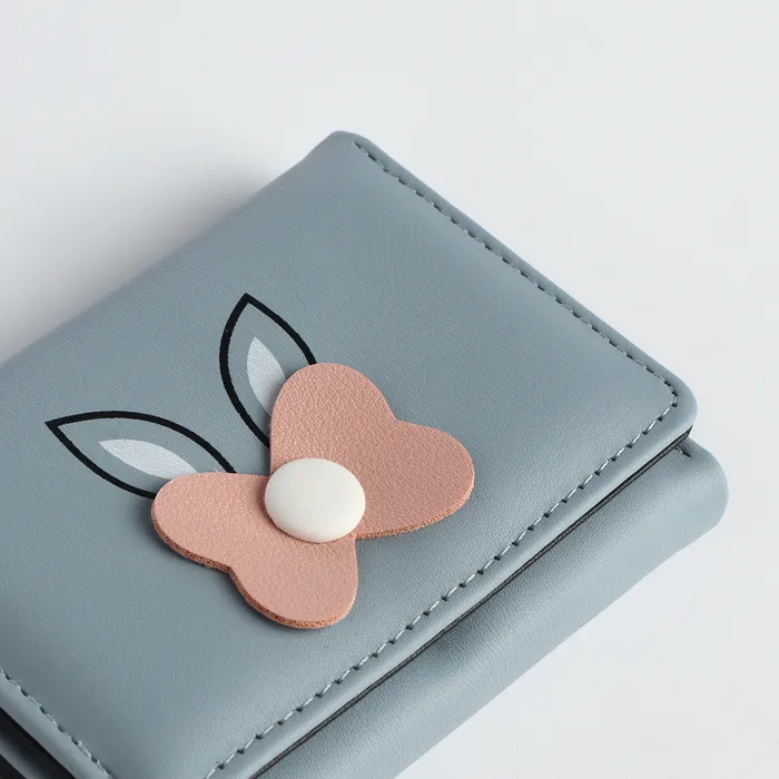 Кошелёк «Цветочек», маленький, для девочки, на кнопке, голубой — Характеристики