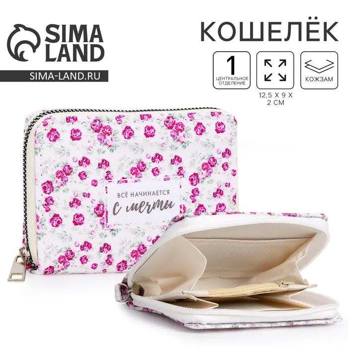 Кошелёк «Все начинается с мечты», 2 отдела на молнии — Характеристики