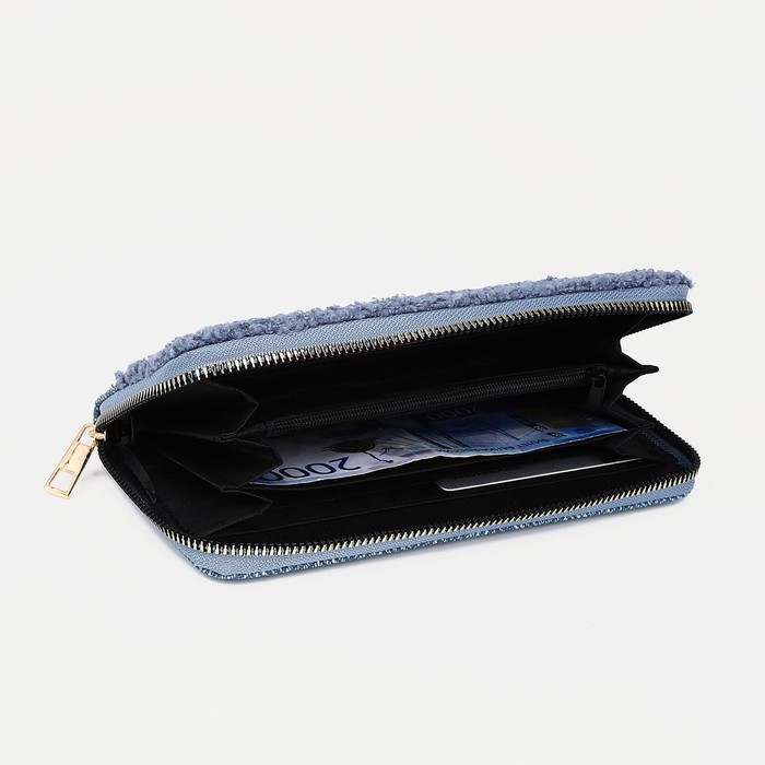 Кошелёк женский, большой, с декоративной вставкой, на молнии, синий — Характеристики