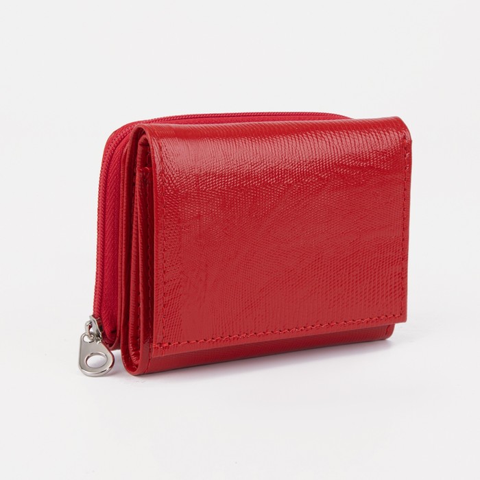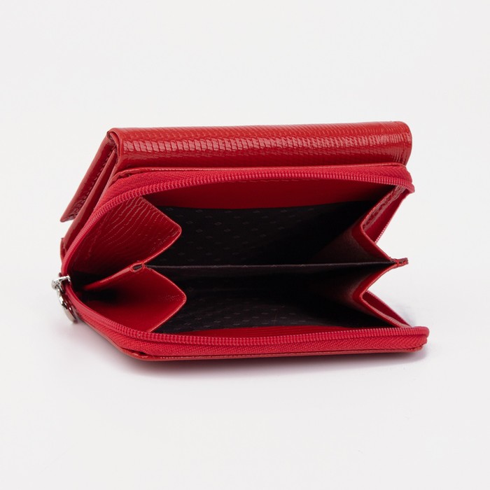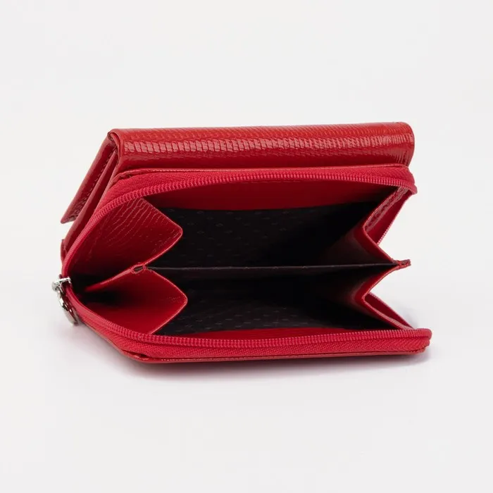 Кошелёк женский «Кайман» на кнопке, 10×3×8 см, с текстурой, красный — Характеристики