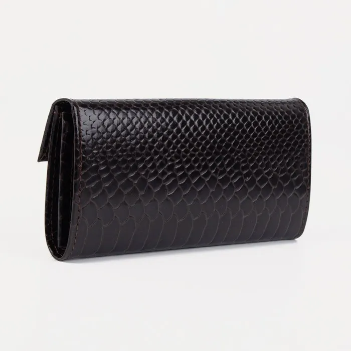 Кошелёк женский «Кайман» на кнопке, 18×3×9 см, с текстурой, чёрный — Характеристики