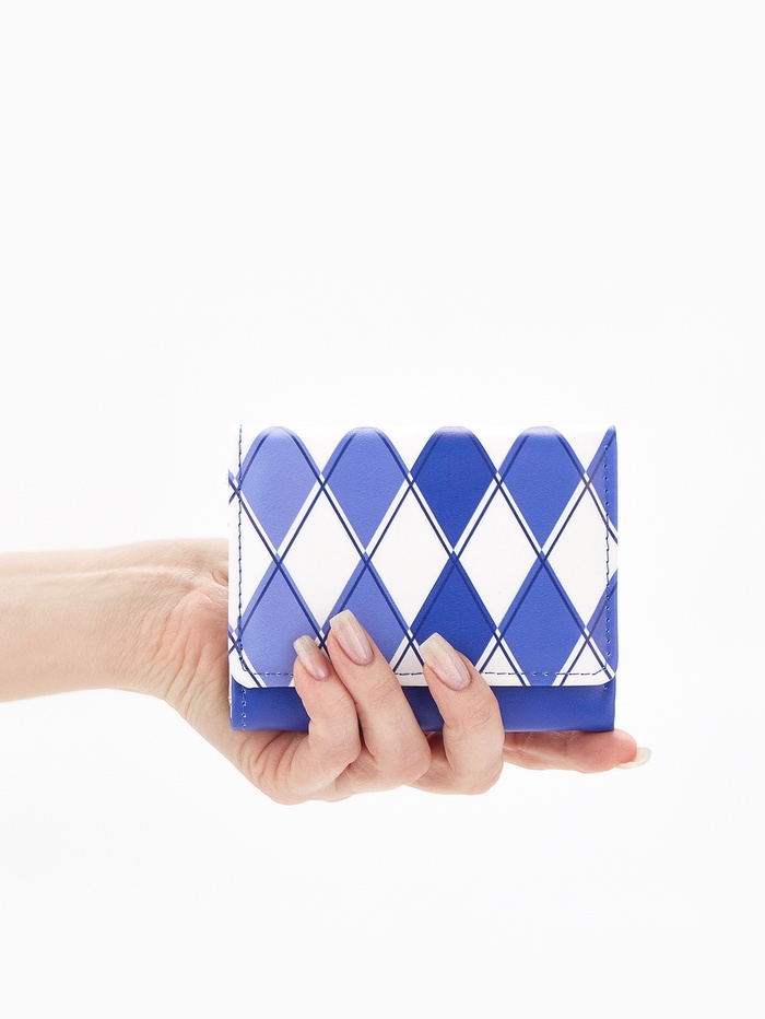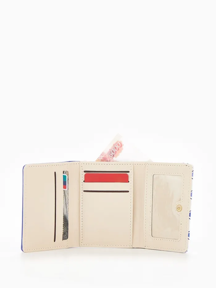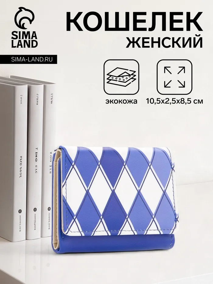 Кошелёк женский на кнопке, 10.5×2.5×8.5 см, с принтом, синий/белый — Характеристики