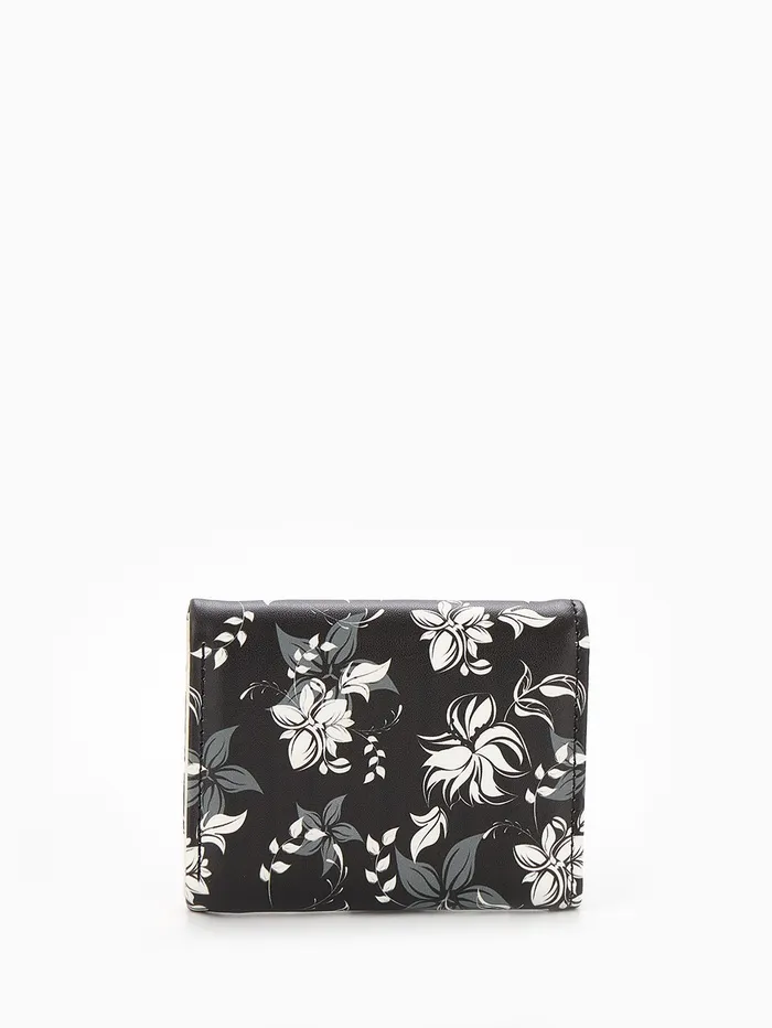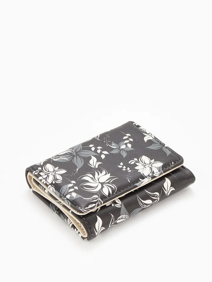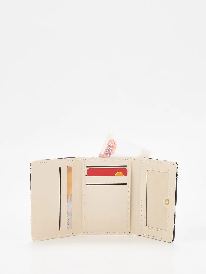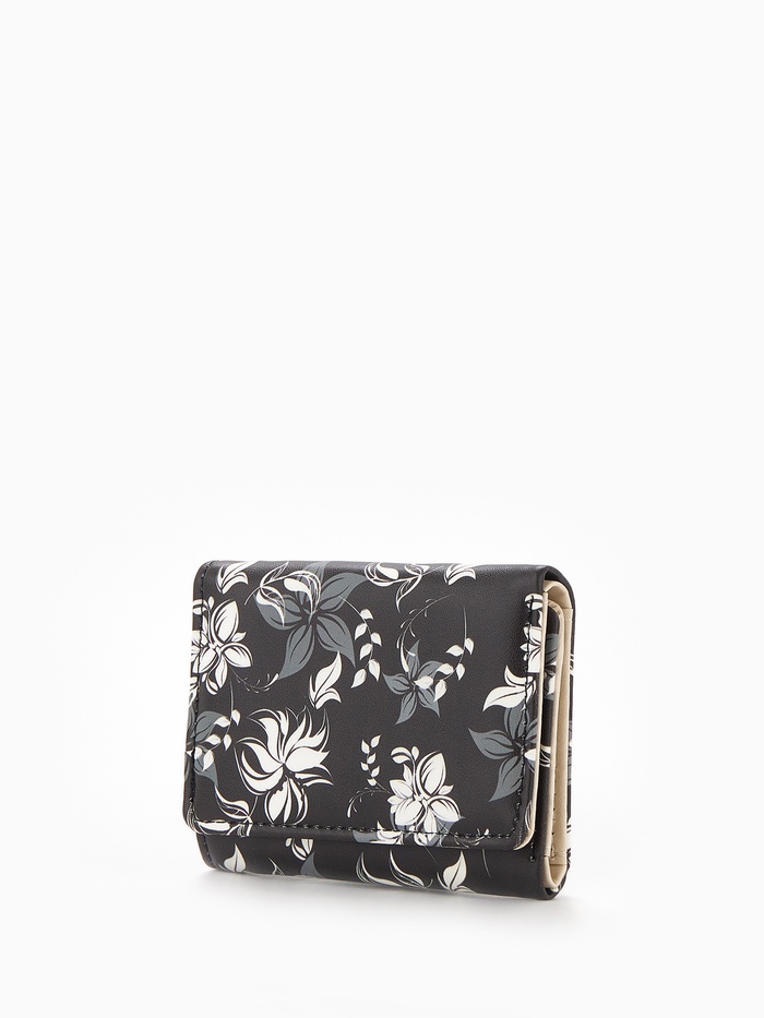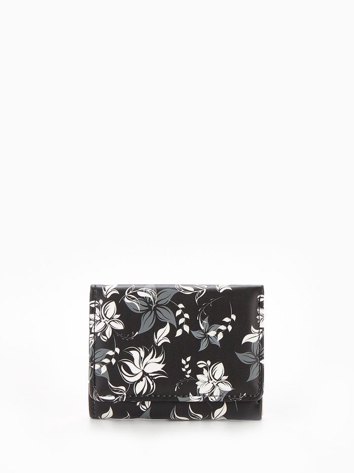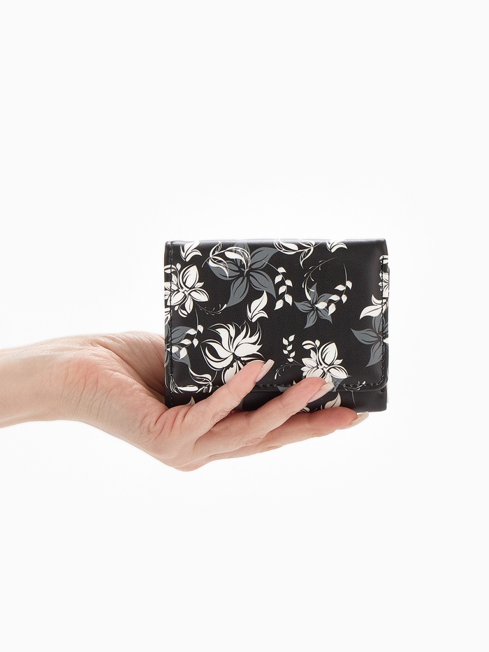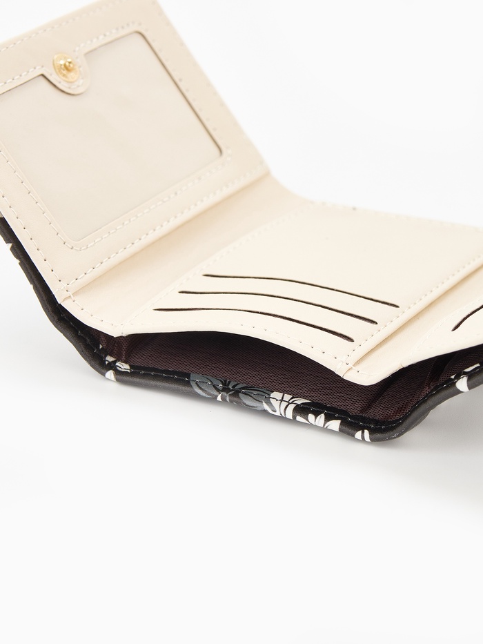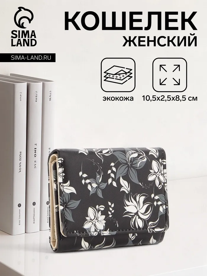 Кошелёк женский на кнопке, 10.5×2.5×8.5 см, с цветочным принтом, чёрный/белый — Характеристики