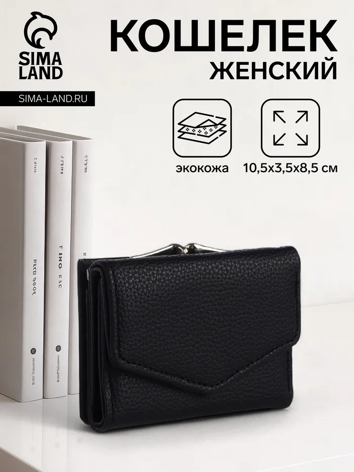 Кошелёк женский на кнопке 10.5×3.5×8.5 см, чёрный — Характеристики