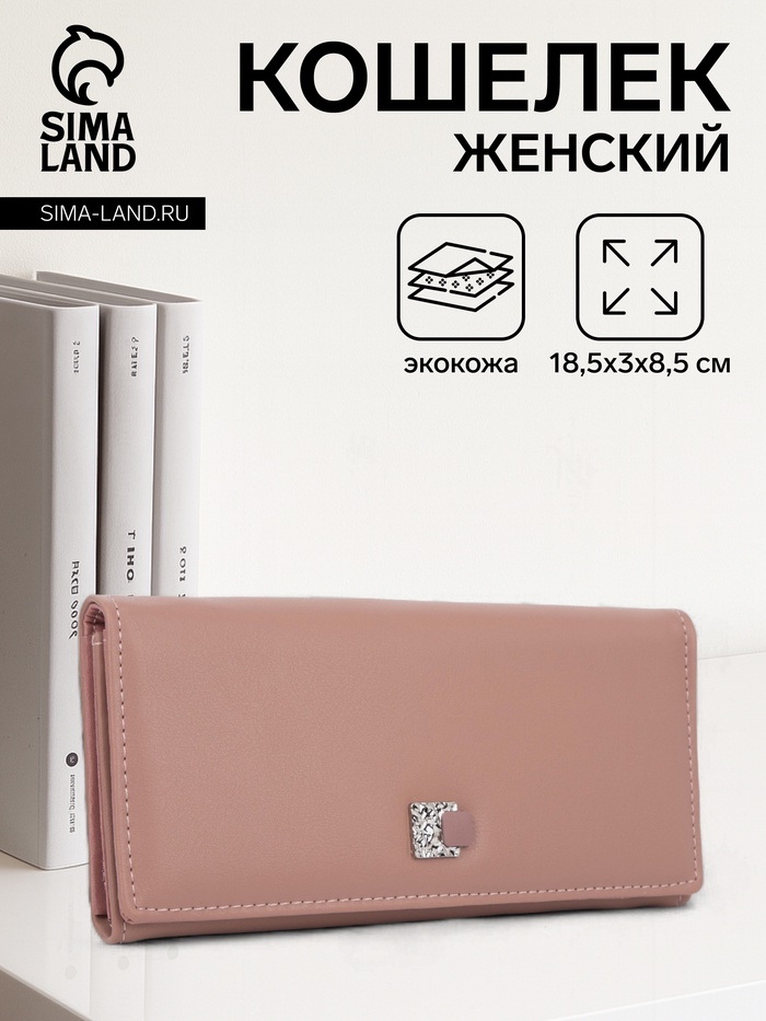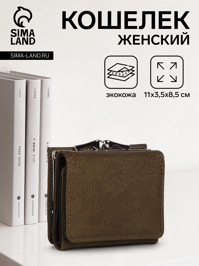 Кошелёк женский на кнопке 10.5×3.5×8.5 см, серый — Характеристики