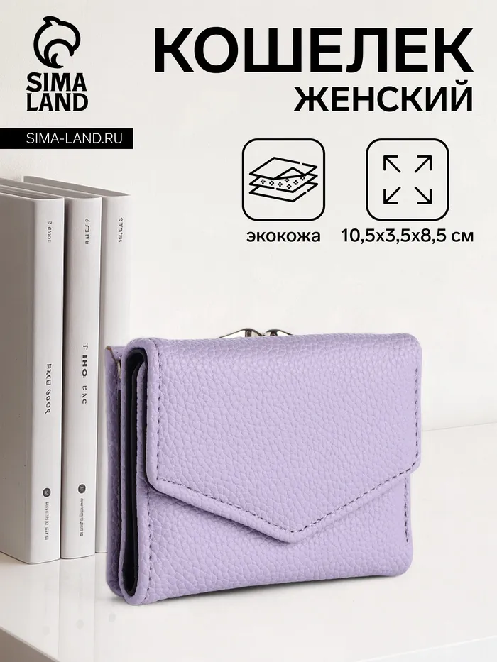 Кошелёк женский на кнопке 10.5×3.5×8.5 см, сиреневый — Характеристики