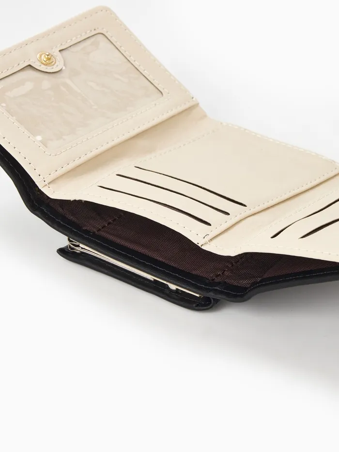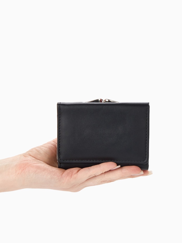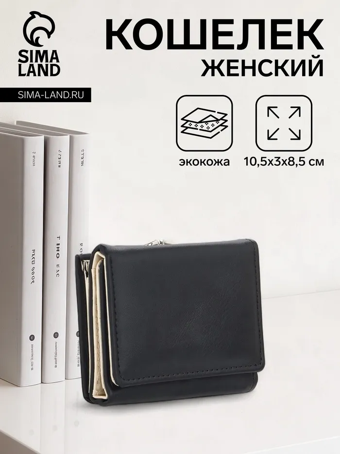 Кошелёк женский на кнопке, 10.5×3×8.5 см, однотонный, чёрный — Характеристики
