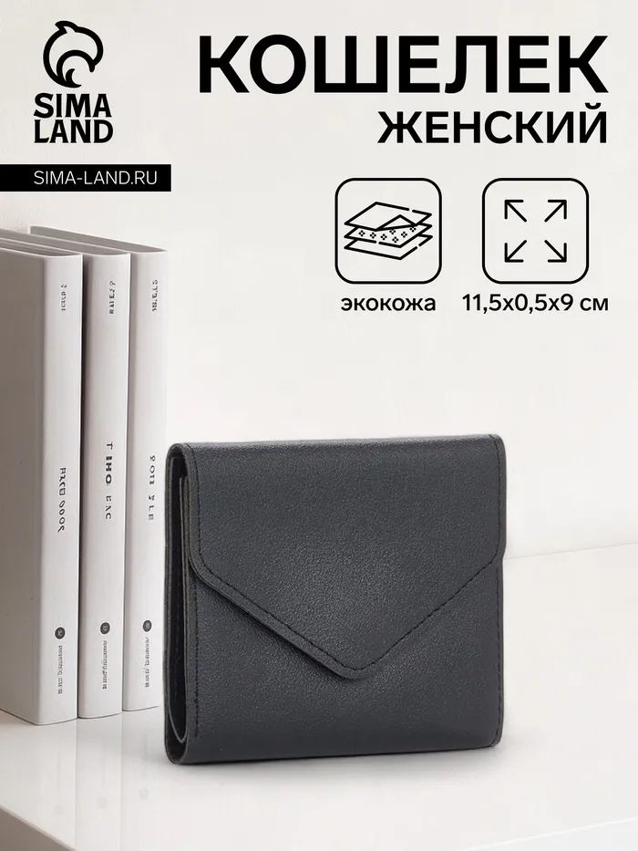 Кошелёк женский на кнопке 11.5×0.5×9 см, чёрный — Характеристики