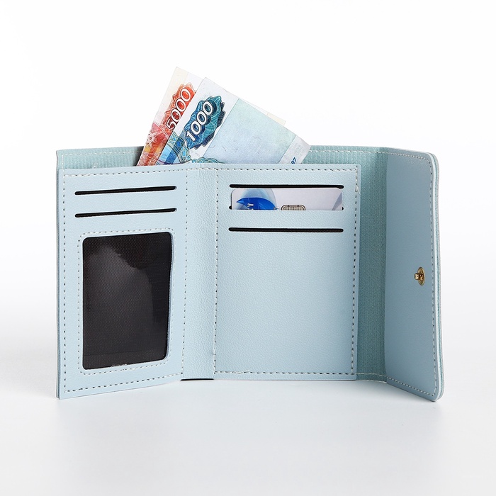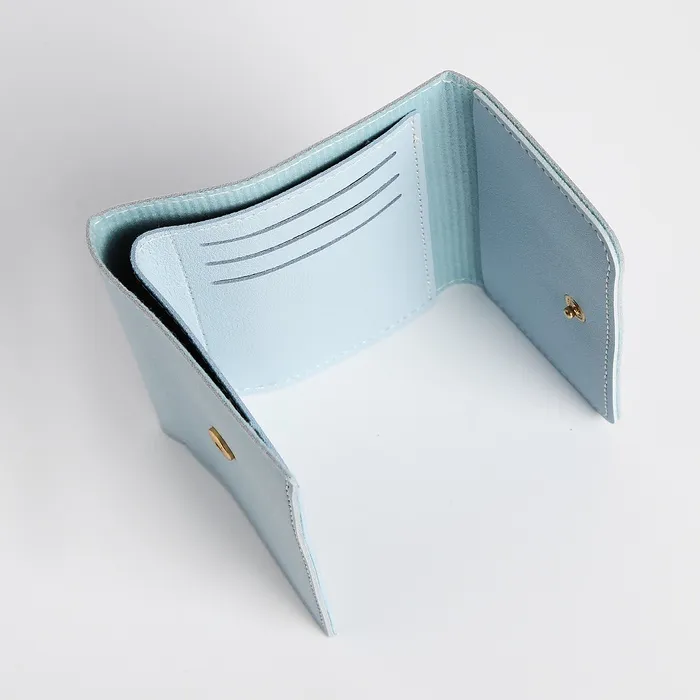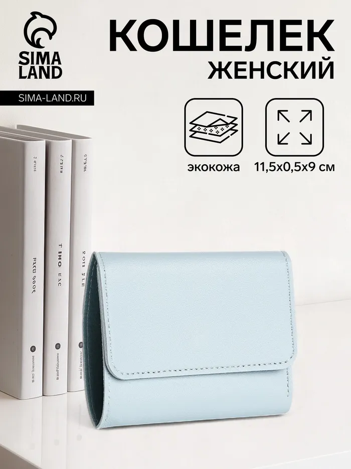 Кошелёк женский на кнопке 11.5×0.5×9 см, однотонный, нежно-голубой — Характеристики