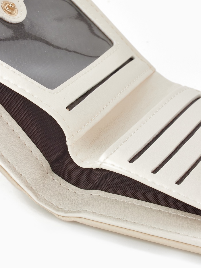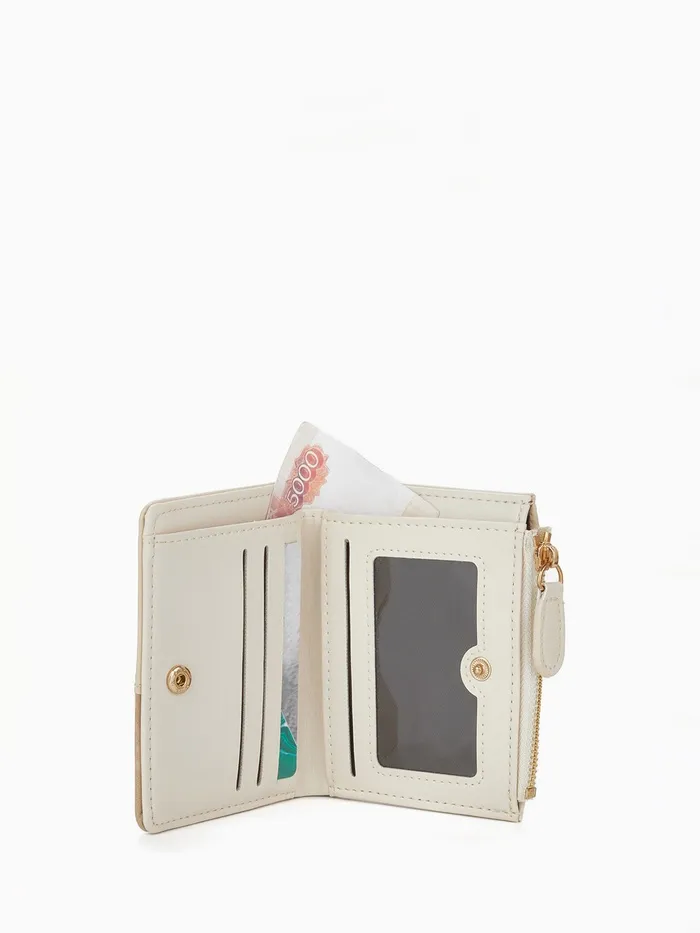 Бежевый компактный кошелёк с кнопкой сочетает нейтральную эстетику с практичной организацией пространства. Универсальный оттенок интегрируется в любую стилевую палитру — от делового гардероба до повседневных образов. Продуманная конструкция сохраняет элегантную тонкость даже при заполнении.